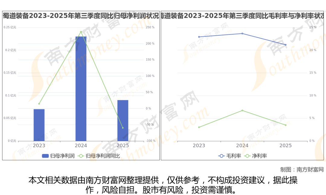 2025年第三季度季报显示,蜀道装备公司毛利率21.18%,净利率3.49%,归属净利润927.98万,同比增长-59.69%。