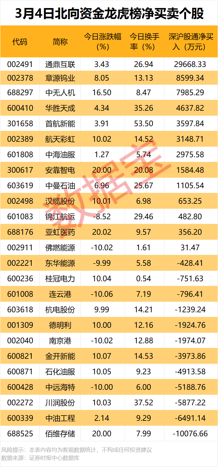 今日龙虎榜现身个股中,13股获北向资金净买入。净买入居首的是通鼎互联,金额为2.97亿元;章源钨业获北向资金净买入8599.34万元,居次席。