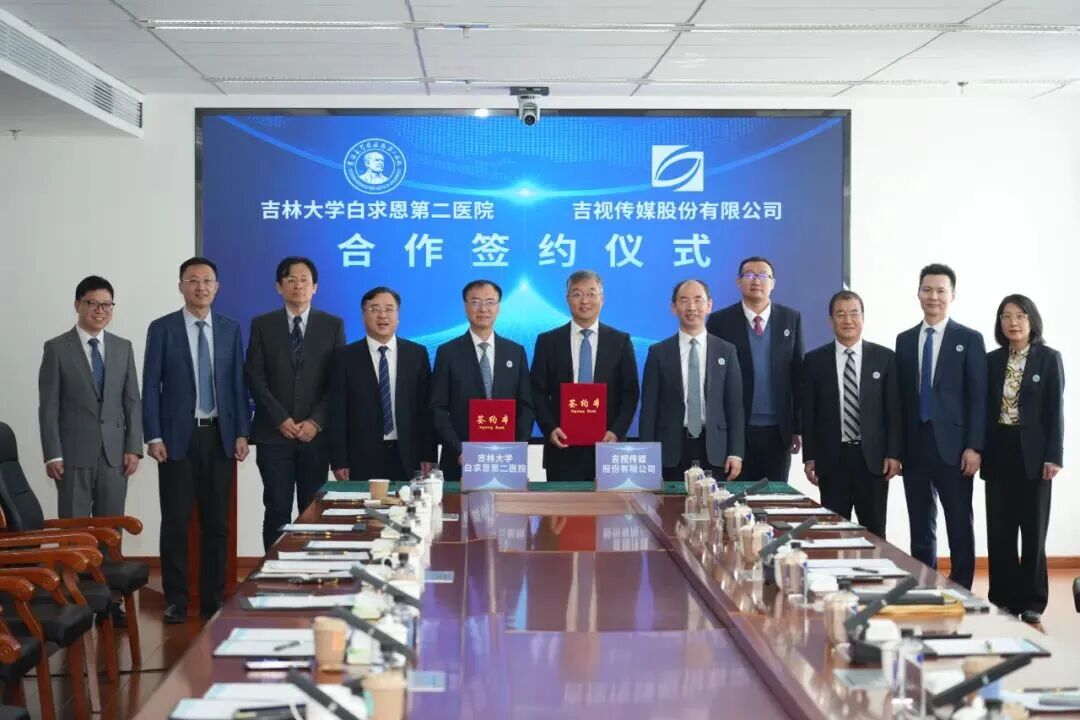 2026年3月6日,吉视传媒股份有限公司与吉林大学白求恩第二医院在吉视传媒信息枢纽中心举行合作签约仪式。双方将以“健康中国”战略为引领,紧扣省委省政府兴边富民、稳边固边、医疗强边工作部署,依托吉视传媒全省720万家庭电视大屏终端,联合打造智慧医疗兴边富民重大项目,以“智慧广电+医疗健康”创新模式,让优质医疗服务直通千家万户、直达边境基层。