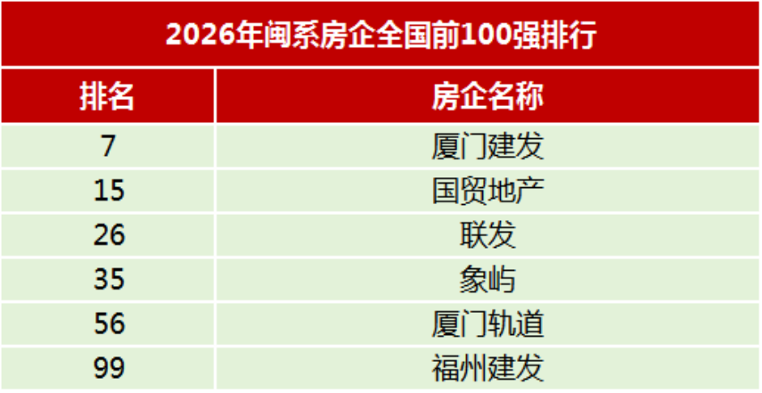 然而,根据3月18日,由中国房地产业协会发布的“2026房地产开发企业综合实力500强”研究成果显示,随着债务违约潮的持续发酵,绝大多数闽系民营房企已消失在主流视野中。榜单前100名的仅有厦门建发、国贸地产、联发、象屿、厦门轨道、福州建发等6家。