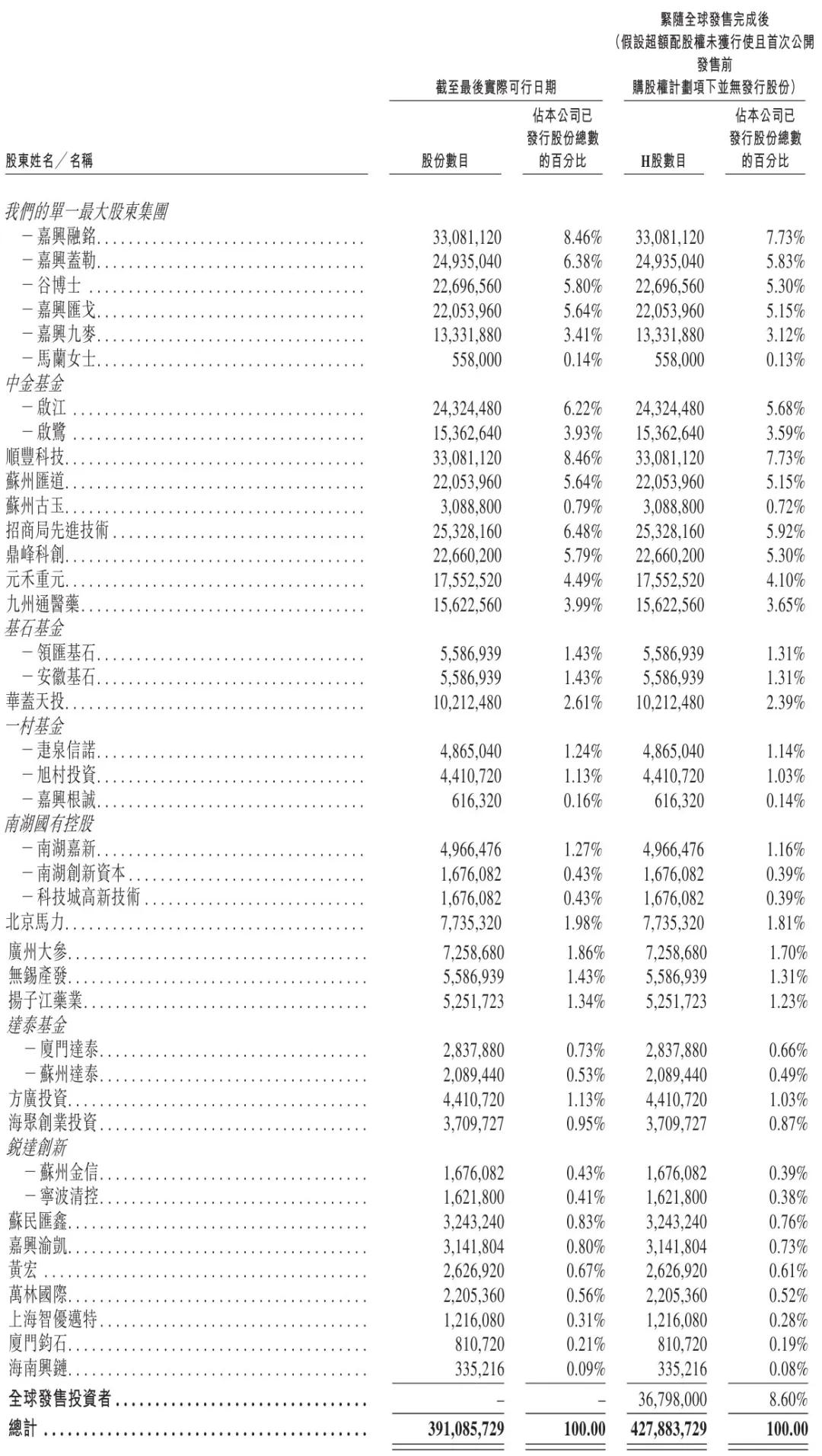 IPO后,谷春光博士持股为5.3%,嘉兴融铭持股为7.73%,嘉兴盖勒持股为5.83%,嘉兴汇戈持股为5.15%,嘉兴九麦持股为3.12%,马兰女士持股为0.13%,招商局先进技术持股为6.48%,九州通医药持股为3.99%。