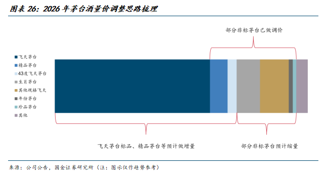 3)明确大单品、做增量。公司明确“升级精品茅台酒质,目标将其打造为仅次于飞天茅台的第二大单品”、“持续深耕43度宴席和年轻人消费市场”等。我们预计飞天茅台标品、精品茅台、43度飞天茅台在2026年投放量会有所增加。