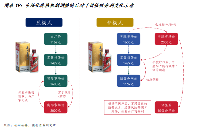更重要的是,厂商间价值链的分利模式由此得到根本性扭转。虽然在完全竞争市场下,飞天茅台的市场价格仍依赖于供需机制的自然撮合,但新的价格机制能够削弱原裸价模式下渠道囤货居奇、炒作行为对茅台酒价格波动率的放大效应。