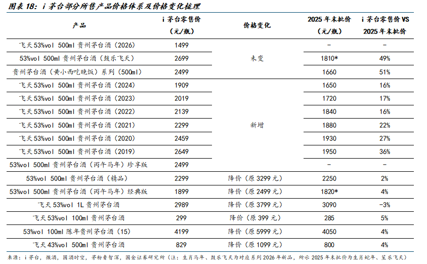 对于主要标品,调整后i茅台售价与2025年末市场一批价价差保持在±5%范围内,涉及产品包括精品茅台、生肖茅台、1L/100ml飞天茅台、十五年份茅台和43度飞天茅台。当年产飞天茅台零售价未有调整,仍为1499元。在2025年末时,2025年产飞天茅台批价较1499元零售价溢价约5%,亦在前述价差范围内。