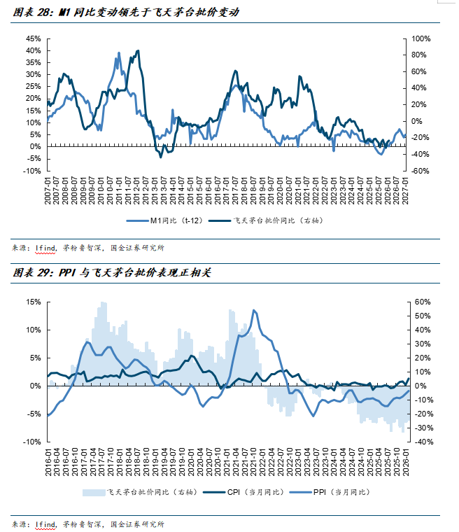 2)公司春节动销已先于行业层面有所改善。基于此,我们判断当前公司价盘已处于筑底窗口期。同时,非标茅台的社会库存在春节期间得到明显去化,渠道再抛压致使价盘大幅承压的风险显著降低。此外,M1、PPI等自上而下前瞻指标已有所修复,这亦对飞天茅台在内的茅台酒价盘筑底形成支撑。