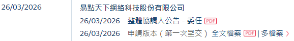 2025年3月26日,来自陕西西安高新区的A股上市公司易点天下网络科技股份有限公司 Easy Click Worldwide Network Technology Co., Ltd.(简称"易点天下”)在港交所递交招股书,或很快在香港主板挂牌上市。