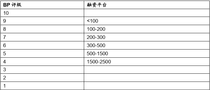 在通过总资产确定规模评级后,进一步借助区域调整系数设定区域因子。区域调整系数如下,发达地区及主要省会城市细分至区县级,其他地区由于样本数量有限细分至地市级。从下表可以看出,凭从业经验来看,像上海这种地方,肯定是J级,像贵州一些地方,肯定是I级,像潍坊等低地,大概率就是H级。这个区域调整系数本质是锁定一个地区的评级上下限的,比如贵州地区,无论企业质量多好,国有企业除了茅台这种,企业BP评级很难低于7了,上海这种地方,企业BP评级很难高于6了。