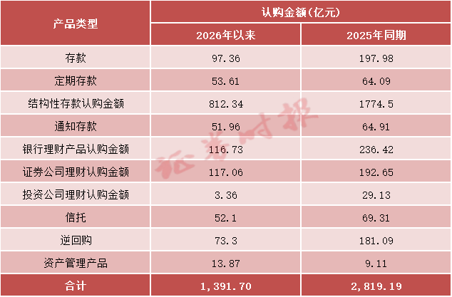 数据显示,截至3月25日,今年以来,有超过460家上市公司认购理财产品,合计认购金额接近1400亿元,较2025年同期缩水超1400亿元。