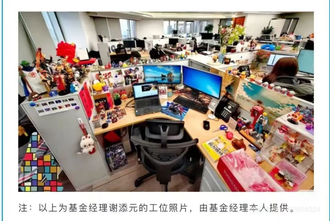 谢添元在2024年二季报刚接手产品不久就买入泡泡玛特,在2024年底成为第一大重仓乃至2025年四季报,哪怕回调还是第一大重仓,只是略微减仓。我想起他著名的那张“手办/卡牌/游戏/饰品的深度消费者&95后基金经理的工位”照片,这个态度真的是不一样,四季度一部分基金经理相对大幅度减仓了泡泡玛特,以避开下跌。