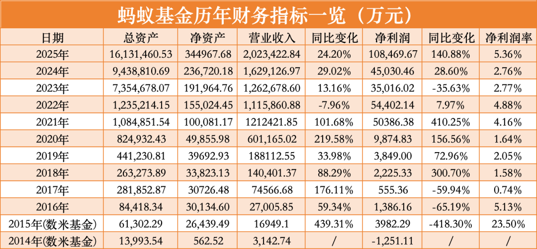 从净利润率看,2025年蚂蚁基金的净利润率达到5.36%,时隔9年重回5%以上的水平。