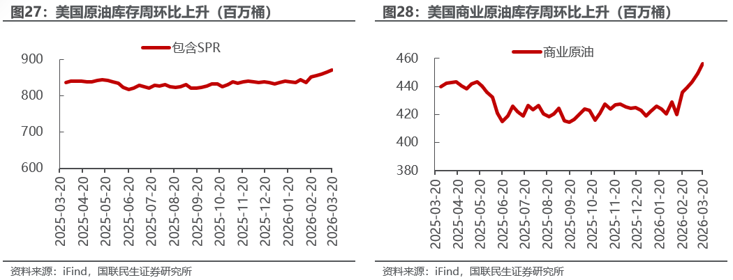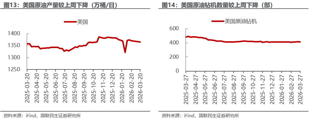 地缘冲突持续,澳洲气候因素或加剧能源危机。3月23日,特朗普称与伊朗进行了富有成效的对话、且将针对伊朗发电站及能源基础设施的军事打击行动推迟5天。3月24日,以媒报道,美国有意提出为期一个月的停火方案,以便与伊朗讨论一份包含15个要点、旨在结束冲突的协议。在特朗普的表态下,上半周油市有所降温。然而,伊朗对此回应:①要求停止一切“敌对恐怖犯罪行为”,②拒绝短期停火、要求建立确保冲突不再发生的结构性保障,③明确提出要为遭受的损毁索赔,④停火协议必须涵盖“抵抗之弧”的所有成员,⑤明确将该海峡的通行权与停火谈判剥离,拒绝将其作为换取协议的筹码。3月27日,特朗普称,应伊朗政府请求,将伊朗能源设施的摧毁期限暂停10天;随即伊朗表示,未要求美国暂停对其能源设施的打击行动,也未就15点计划做出最终回应。此外,美国国防部正考虑向中东增派多达1万人的地面部队,伊朗警告、如果美国在中东地区发动地面行动、伊朗将采取对等行动进行反制,以色列国防部长则称对伊朗的打击将进一步升级。整体来看,以伊态度相对明确,伊朗的态度也相对强硬,我们预期能源供应问题短期未必能得到解决,因此,我们依然预期油价将持续维持100美元/桶以上,且具备持续上涨的空间。另外,热带气旋Narelle已导致澳大利亚三座主要LNG出口设施相继中断生产,合计约占澳洲LNG出口的一半、约占全球LNG贸易量的8.4%,这将加剧全球能源供应紧张的局面,在地缘冲突未能解决的局面下,若澳洲气候影响持续,油气价格存在突破本月价格高点的可能。
