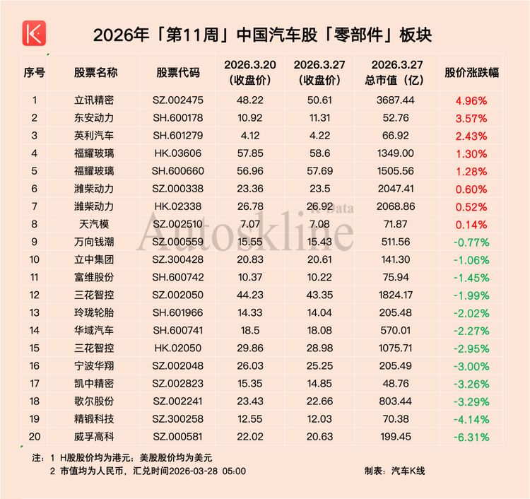 附:汽车股六大板块周度走势(3.20-3.27)