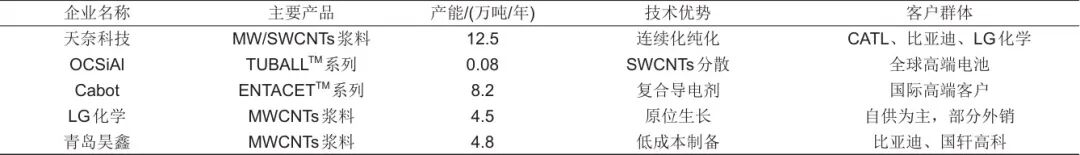 表3全球主要CNTs导电剂生产企业竞争力分析(2024—2025年)