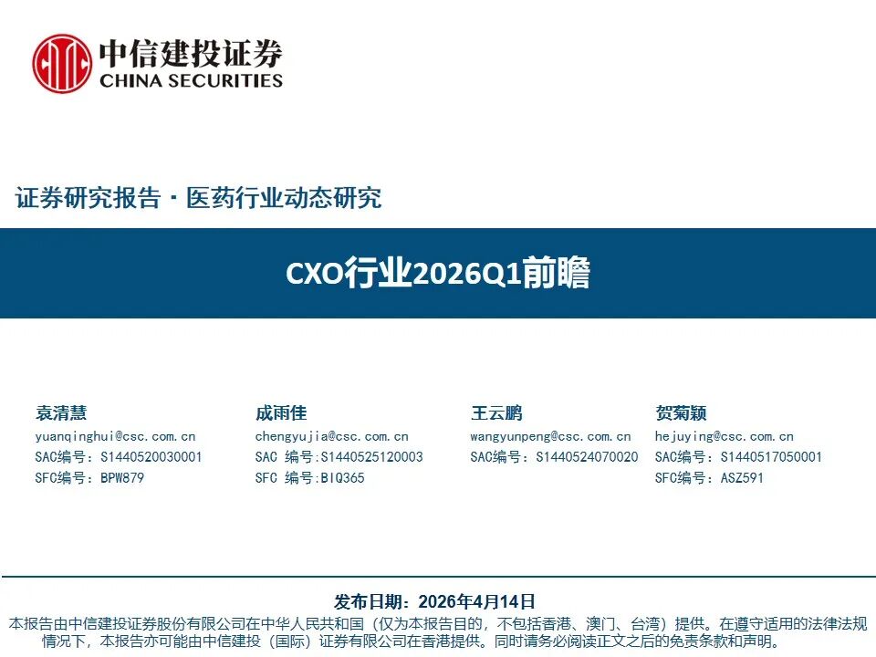 海外投融资大环境进入季度间波动,不同阶段、不同疾病领域的CXO服务需求进一步分化,国内投融资活动景气度持续上行,弹性更强,持续看好CXO板块成长空间。AI对制药及医药外包行业影响短期有限、但市场对新技术对长期的行业发展变革的影响已初步达成共识,早期研发阶段(CRO)影响呈分化趋势,生产段(D、M)整体利好。