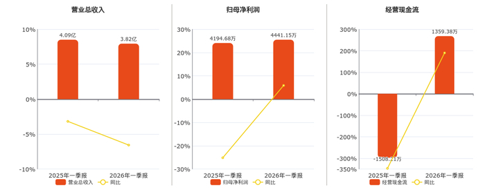 公司营业总收入为3.82亿元。归母净利润为4441.15万元,较去年同报告期归母净利润增加246.48万元,同比较去年同期上涨5.88%。经营活动现金净流入为1359.38万元,较去年同报告期经营活动现金净流入增加2867.58万元。