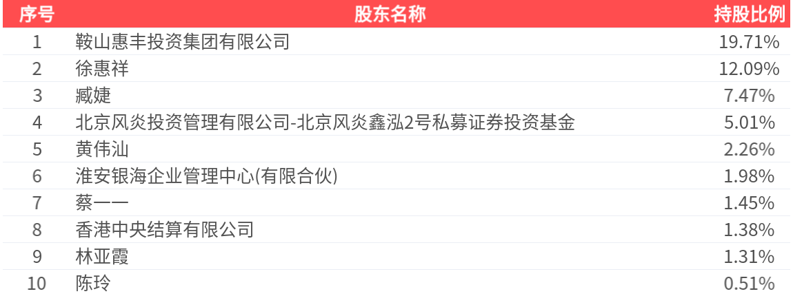 公司股东户数为3.40万户,前十大股东持股数量为2.12亿股,占总股本比例为53.18%,前十大股东持股情况如下: