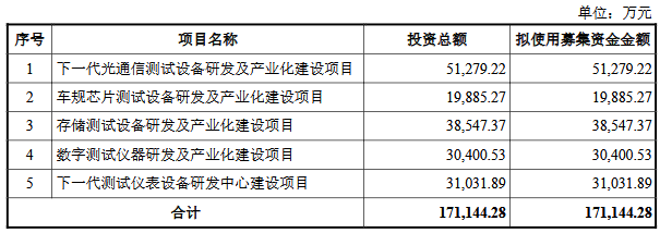 联讯仪器本次发行募集资金总额为210,158.67万元,扣除发行费用后,募集资金净额为190,708.02万元,比原计划多19,563.74万元。联讯仪器2026年4月20日披露的招股书显示,公司拟募集资金171,144.28万元,用于下一代光通信测试设备研发及产业化建设项目、车规芯片测试设备研发及产业化建设项目、存储测试设备研发及产业化建设项目、数字测试仪器研发及产业化建设项目、下一代测试仪表设备研发中心建设项目。