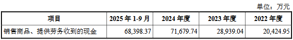 上述同期,公司经营活动产生的现金流量净额分别为698.05万元、-525.90万元、8,078.58万元、-2,548.27万元,销售商品、提供劳务收到的现金分别为20,424.95万元、28,939.04万元、71,679.74万元、68,398.37万元。