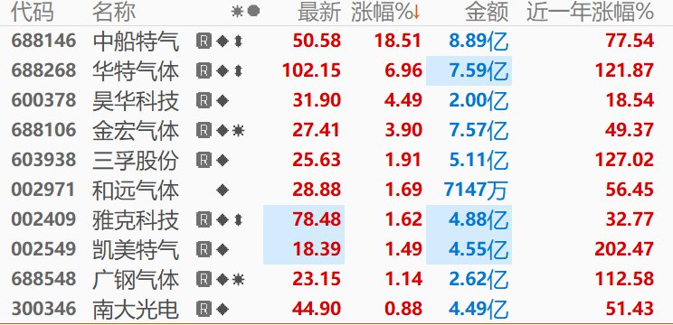 格隆汇4月3日|午后工业气体概念持续活跃,中船特气涨超18%,华特气体、金宏气体、昊华科技、和远气体等跟涨。消息面上,据卓创资讯,本周进口管束氦气周均价在126.43元/立方米,较上期涨31.89%,同比涨21.57%。卡塔尔氦气供应扰动从2月底开始,4月份库存水平更加紧迫,4-5月国内氦气涨价幅度或将更加陡峭。