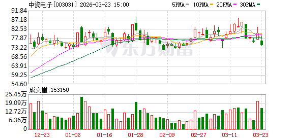中瓷电子:截至2026年3月20日收盘公司股东总户数32308户