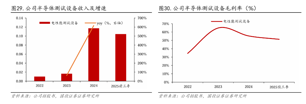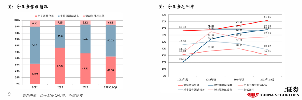 从业务结构看,2025年1至9月,电子测量仪器收入3.43亿元(占比43.06%),半导体测试设备收入3.98亿元(占比50.02%),双轮驱动格局基本形成,有助于平滑单一赛道的景气波动风险。