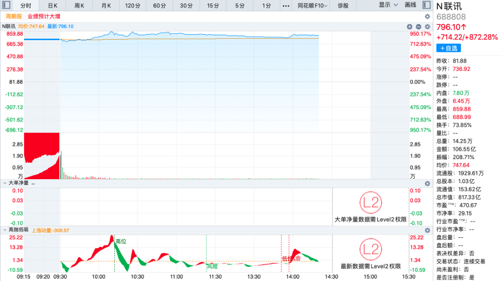 联讯仪器周五登陆上交所科创板,首日盘中涨幅一度高达950.2%,最高触及766元/股,直接超越此前由同为科创板上市的GPU芯片企业沐曦股份保持的首日盘中最大755%涨幅纪录,并以单签最高浮盈约38.9万元,成为年内最赚钱的新股。