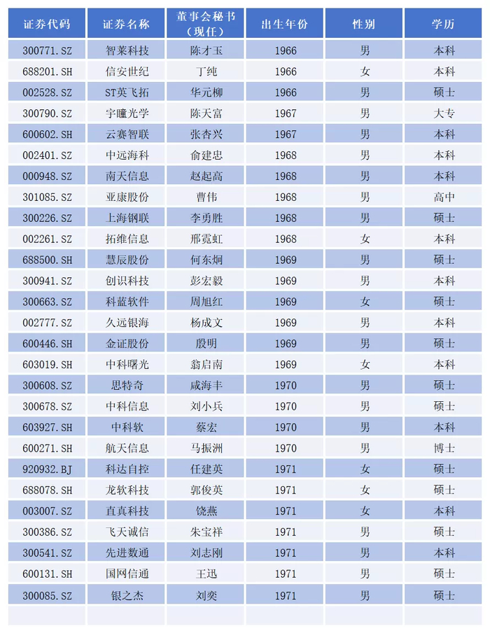 计算机行业的董秘,更像是一群“戴着西装的技术人”。他们既要懂资本市场的游戏规则,又要能跟上技术迭代的节奏,这种“双重身份”,让这个群体呈现出独特的画像特征。
