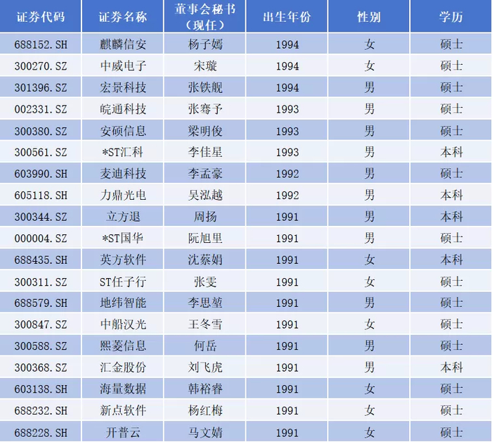 现任35岁及以下董秘