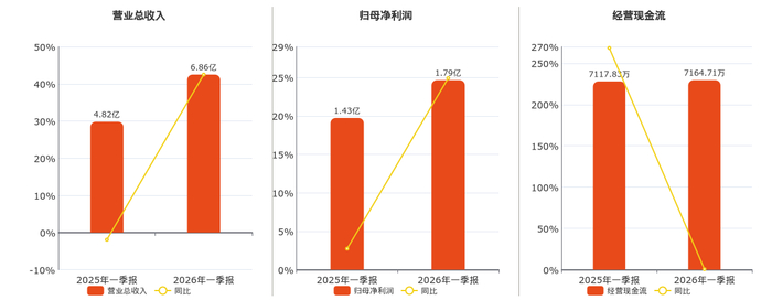 公司营业总收入为6.86亿元。归母净利润为1.79亿元。经营活动现金净流入为7164.71万元。