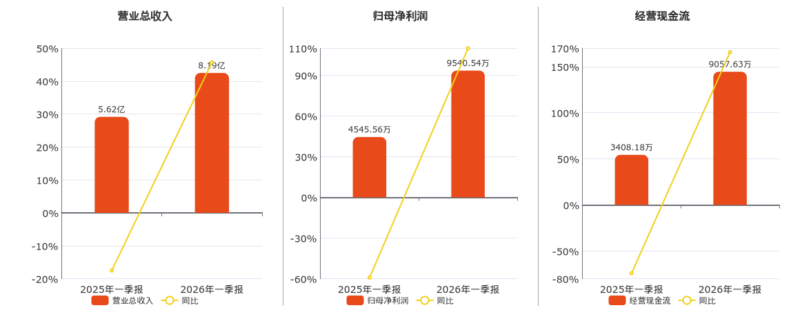 公司营业总收入为8.19亿元。归母净利润为9540.54万元。经营活动现金净流入为9057.63万元。