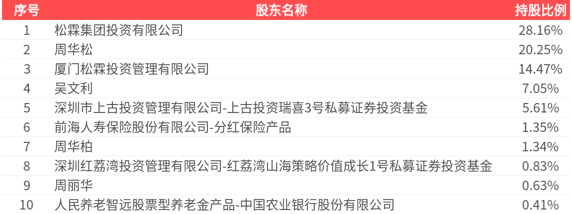 公司股东户数为1.33万户,前十大股东持股数量为3.55亿股,占总股本比例为80.11%,前十大股东持股情况如下: