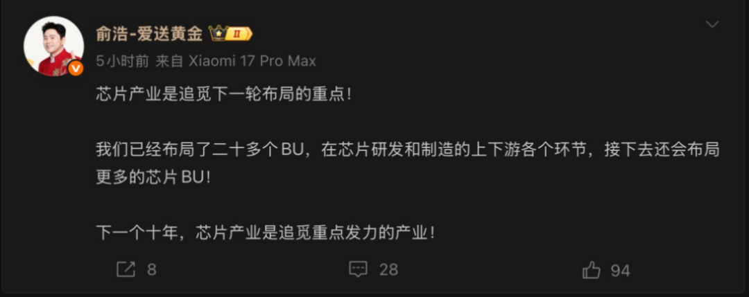 偶尔,他也会发一些国际化战略、品牌高端化、组织架构趋势、产品技术等方面的个人观点。