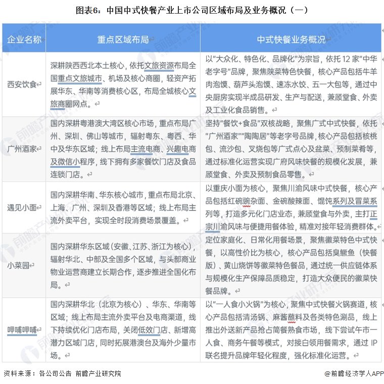 从区域布局看,中国中式快餐产业上市公司均以本土核心区域为根基展开布局,西安饮食深耕西北本土,依托文旅资源拓展全国重点文旅城市、机场及核心商圈并轻资产辐射华东、华南;广州酒家扎根粤港澳大湾区,辐射多区域并布局线上线下全渠道;遇见小面、呷哺呷哺、百胜中国、全聚德深耕华北、华南、华东等多核心区域,兼顾线上外卖与线下门店优化,部分拓展少量海外及港澳台市场;小菜园、巴比食品、五芳斋聚焦华东核心区域,逐步推进全国化布局并依托供应链保障市场覆盖。业务层面,各企业均立足中式特色快餐赛道,依托老字号或自有品牌打造差异化优势,涵盖陕菜、广式点心、川渝小面、徽菜、一人食火锅、中式早餐、京味烤鸭、江南糯米类等品类,拥有明确核心产品。