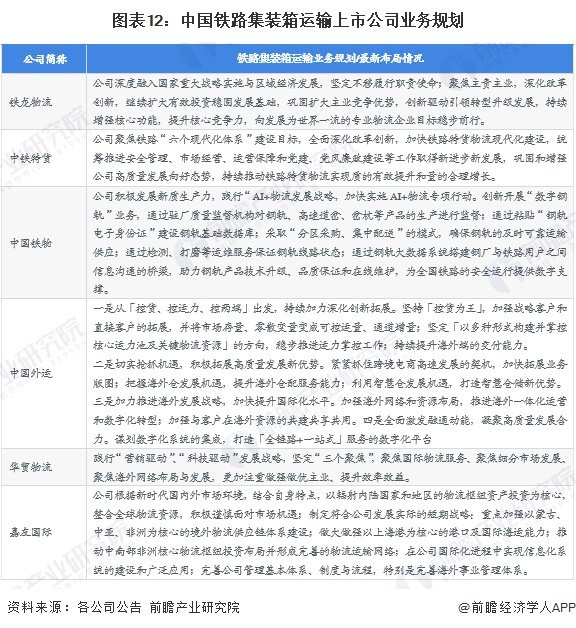 铁路集装箱运输代表性企业在公报中披露其公司战略、经营规划等,其具体业务规划如下: