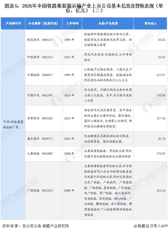 行业主要上市公司:铁龙物流(600125)、中铁特货(001213)、中国铁物(000927)等
