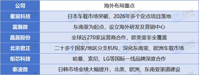 以星宸科技为例,这家全球视觉AI SoC领域的领导者,2024年已占据全球市场26.7%的份额,在安防视觉细分领域更高达41.2%。其产品广泛应用于智能安防、智能机器人、智能车载、AI眼镜等场景,客户覆盖全球主要品牌厂商。2025年,该公司机器人芯片出货量突破1000万颗,同比增长超过5倍;智能车载业务前装出货量进入百万量级,并成功打入日本等海外汽车市场。类似地,北京君正自2020年收购北京矽成(ISSI)后,境外收入占比长期维持在80%以上,其车规级存储芯片深度嵌入全球汽车电子供应链;晶晨股份与全球近270家运营商建立合作,覆盖欧美亚非各大洲主要经济体;炬芯科技则成为哈曼、索尼、LG等国际一线音频品牌的核心供应商。