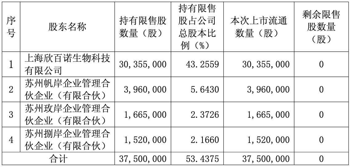 3月20日,近岸蛋白(688137)发布公告,本次股票上市流通的限售股总数为3750万股,占公司发行后总股本的53.4375%,于2026年3月30日上市流通,主要来源于公司首次公开发行的股份。