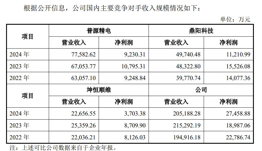 近年来,同行多数企业均出现增收不增利的现象。从2023年至2025年,普源精电营收从6.71亿元增至9亿元,归母净利润从1.08亿元下降至0.86亿元;鼎阳科技营收从4.83亿元增至6.02亿元,归母净利润从1.55亿元微降至1.43亿元;坤恒顺维营收则出现下降,从2.54亿元下降至2.43亿元,归母净利润则从0.87亿元接近“腰斩”至0.46亿元。比较看,规模更大的思仪科技,是唯一营收和盈利正增长的企业。