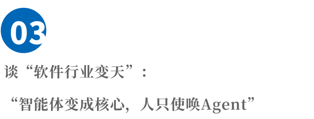 现在的软件都是为人设计的,不是为Agent优化的。未来,软件不会消失,但会变薄、变工具化,软件和智能体协同来发挥价值。我认为这就是软件行业的一个重大变革。