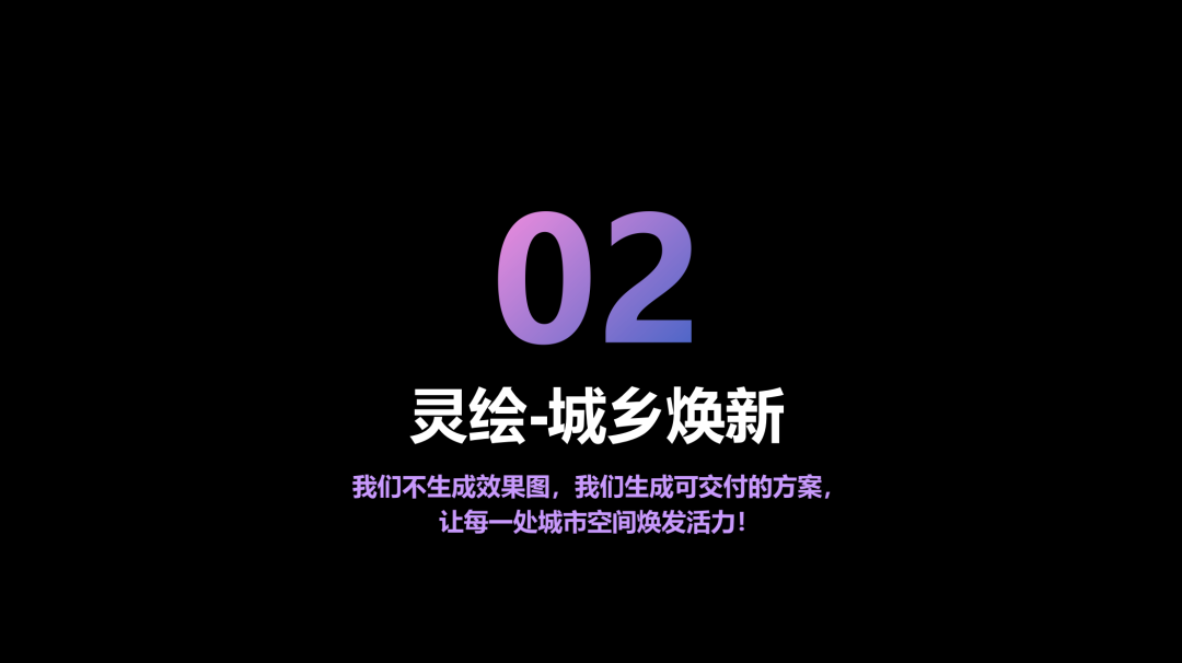 灵绘,聚焦场景落地,以技术力量实现城乡空间迭代升级,又被称作“爆改神器”、“招商神器”。该功能可将空间美学价值、商业价值、未来趋势进行量化处理,快速生成个性化爆改方案,广泛应用于乡村、街区、公园等多元场景。