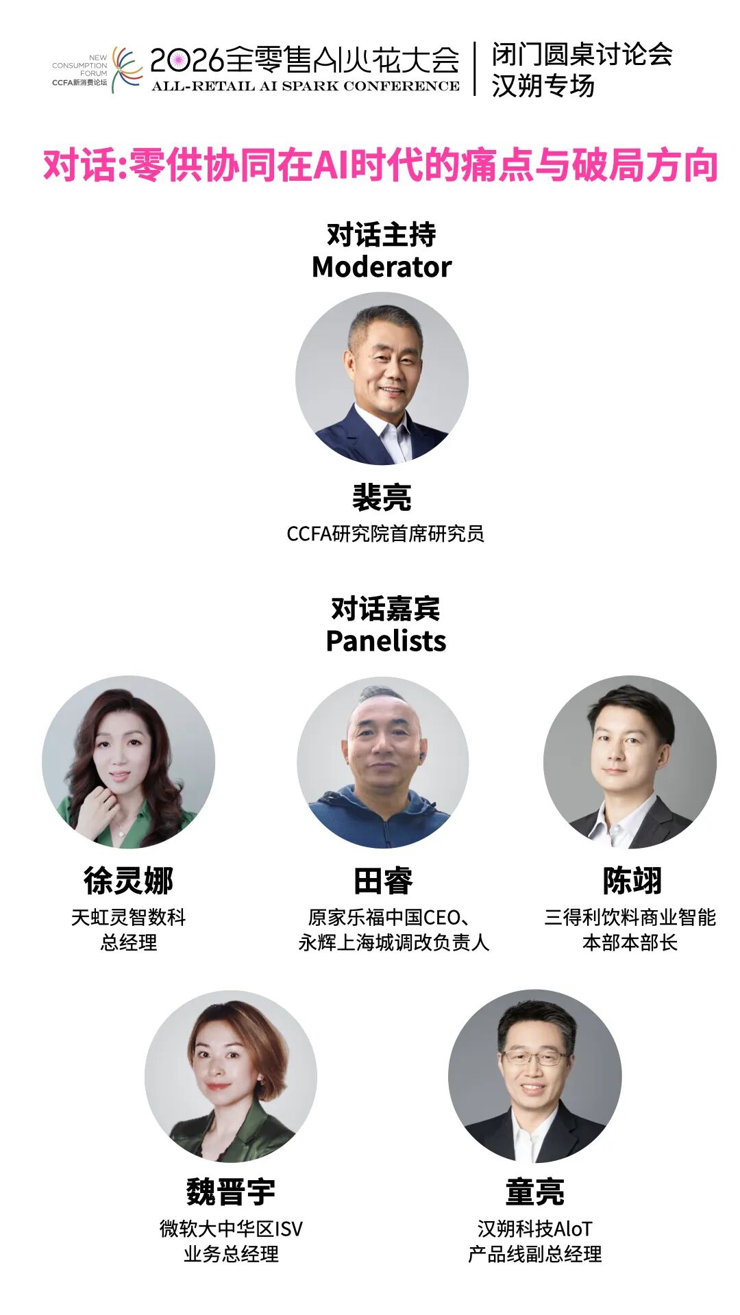由中国连锁经营协会(CCFA)主办的 “2026全零售AI火花大会”近期在杭州圆满落幕。全零售AI火花大会是零售领域规模最大的人工智能专项会议,旨在探讨AI在零售消费全场景应用实践及前沿趋势。作为本届大会的亲密合作伙伴,汉朔科技独家策划了以“Agentic Commerce 时代:门店数字孪生,打造零供关系3.0,全面升级消费体验”为主题的专场闭门会,与零售业行业专家、企业领袖及生态伙伴共同探讨AI时代的零供双方痛点破解、路径创新与落地方案,推动零供双方从“供需合作”向“价值共生”升级,助力行业实现价值跃升。