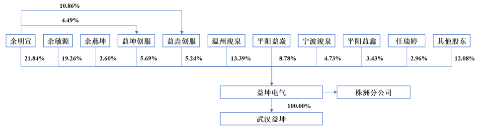 截至报告期期末,余燕坤直接持有公司2.60%股份;余明宣直接持有公司21.84%股份,并通过其任执行事务合伙人的益坤创服、益垚创服分别控制公司5.69%、5.24%股份;余敏源直接持有公司19.26%股份;余燕坤为余明宣、余敏源父亲,三人签署了《共同控制协议书》和《共同控制协议书之补充协议》,约定确认三人共同控制公司;三人现合计直接和间接控制公司54.63%的股份,为公司共同实际控制人。同时,因益坤创服、益垚创服为实际控制人余明宣控制的员工持股平台,为实际控制人的一致行动人。