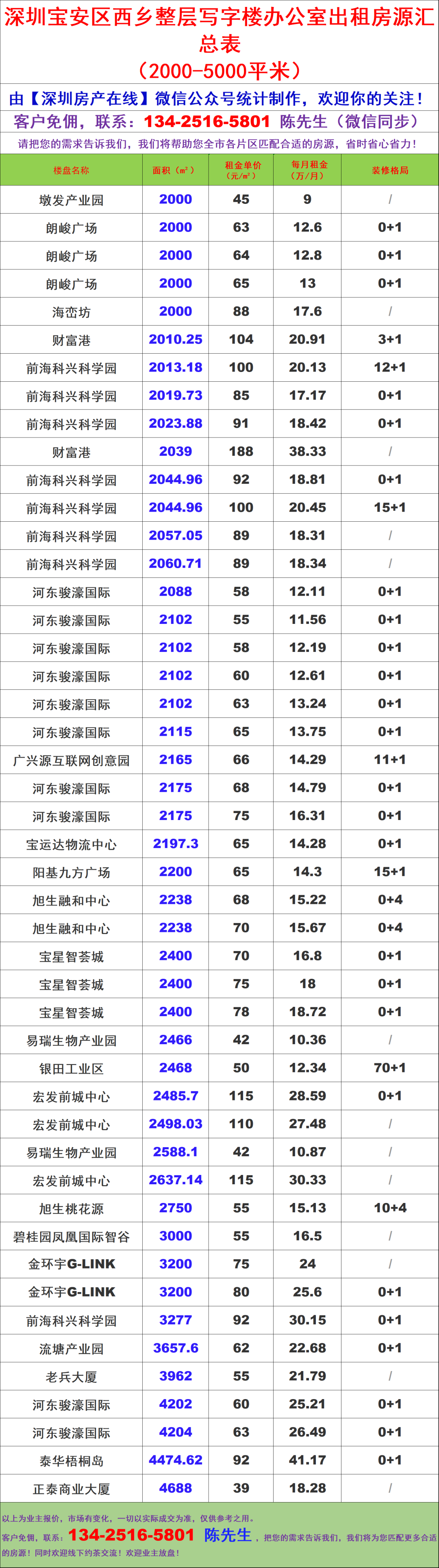 宝安区西乡2000-5000平米办公室出租招租赁信息