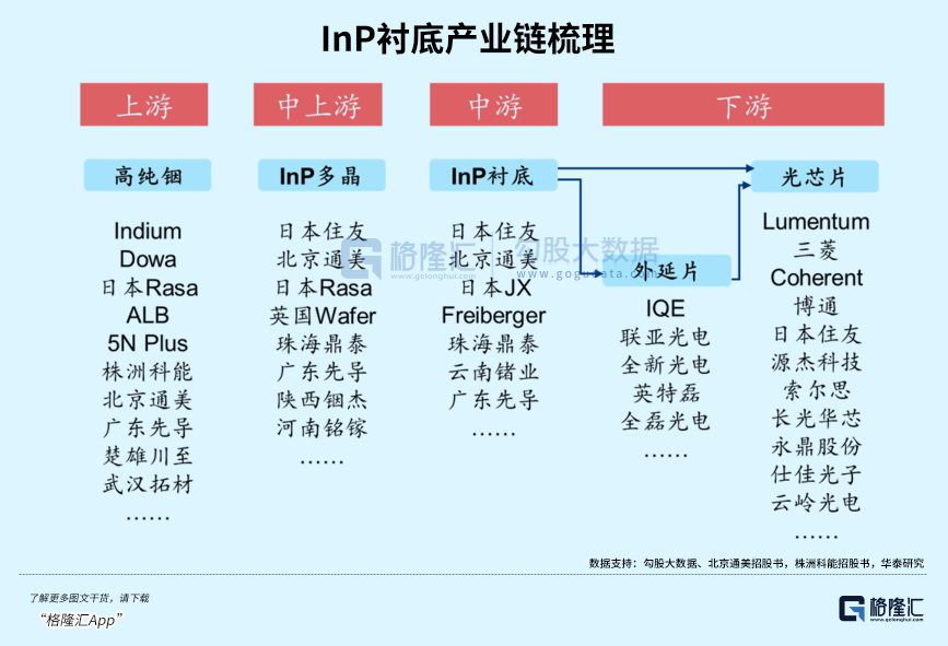 磷化铟价格持续上涨,其产业红利沿着产业链上下游传导,大概会形成三大明确的受益板块: